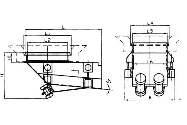 該機(jī)型結(jié)構(gòu)緊湊,工作噪音小,安裝方便,且無(wú)需改動(dòng)即可更換原有的K型往復(fù)式給煤機(jī)。該機(jī)結(jié)構(gòu)分固定部分和振動(dòng)部分兩部分,固定部分和煤倉(cāng)剛性聯(lián)接,振動(dòng)部分通過(guò)減振器和固定部分聯(lián)接,安裝時(shí)不需要在煤倉(cāng)上做安裝基礎(chǔ),安裝、拆卸方便。