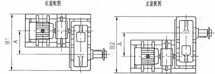 右裝—站在電動機(jī)尾部向前看,減速器低速軸在電動機(jī)的右側(cè)。